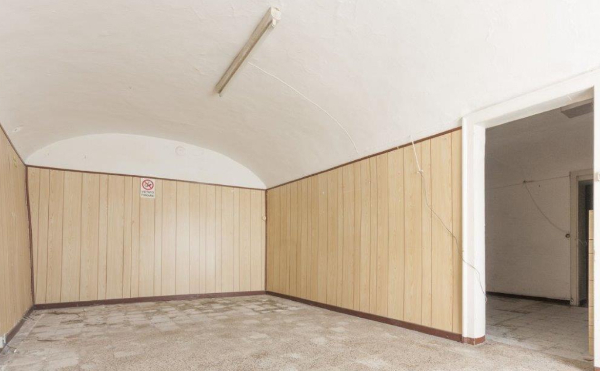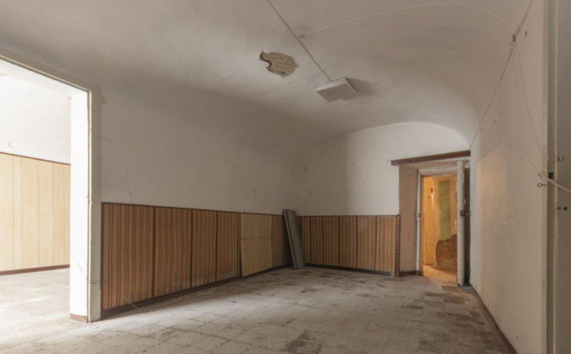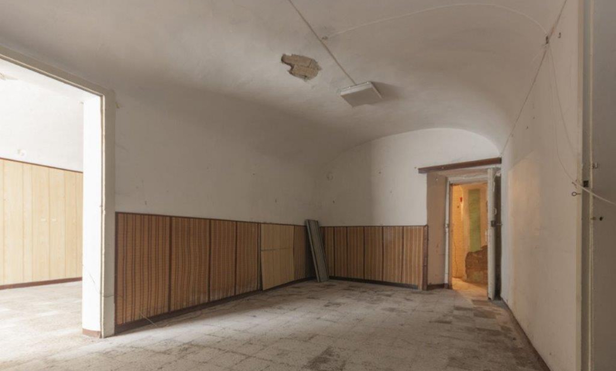 Ampio negozio al PIANO TERRA E INTERRATO di palazzina su 4 livelli. Era l’antica torre del Castello medievale del 1029, ora scorporata e confinante con esso solo da un lato.