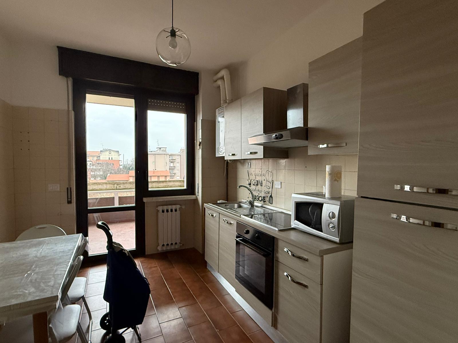 Tre locali, con doppi servizi, cucina abitabile, terrazzino, balcone. Box singolo e cantina.