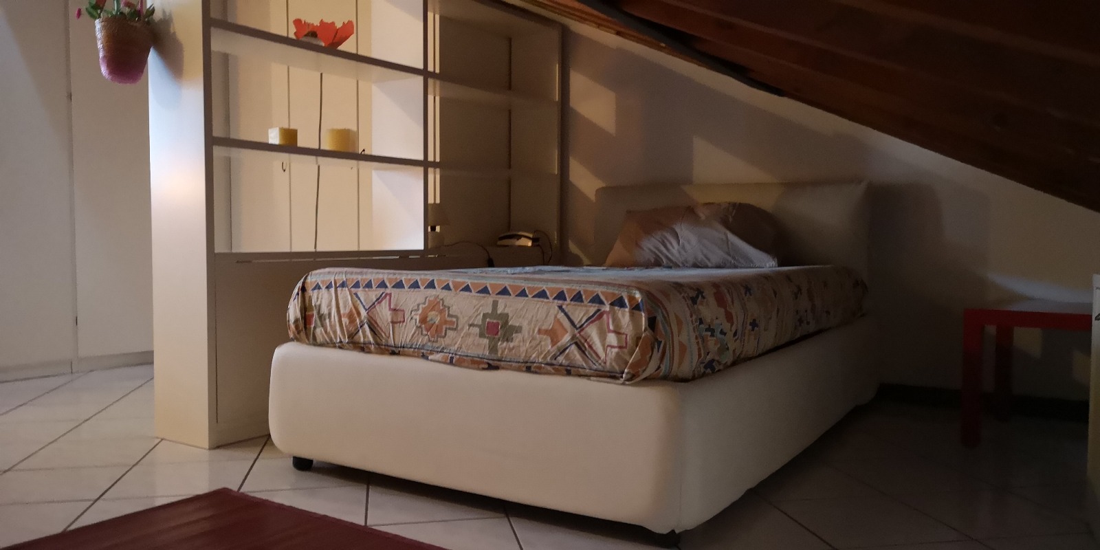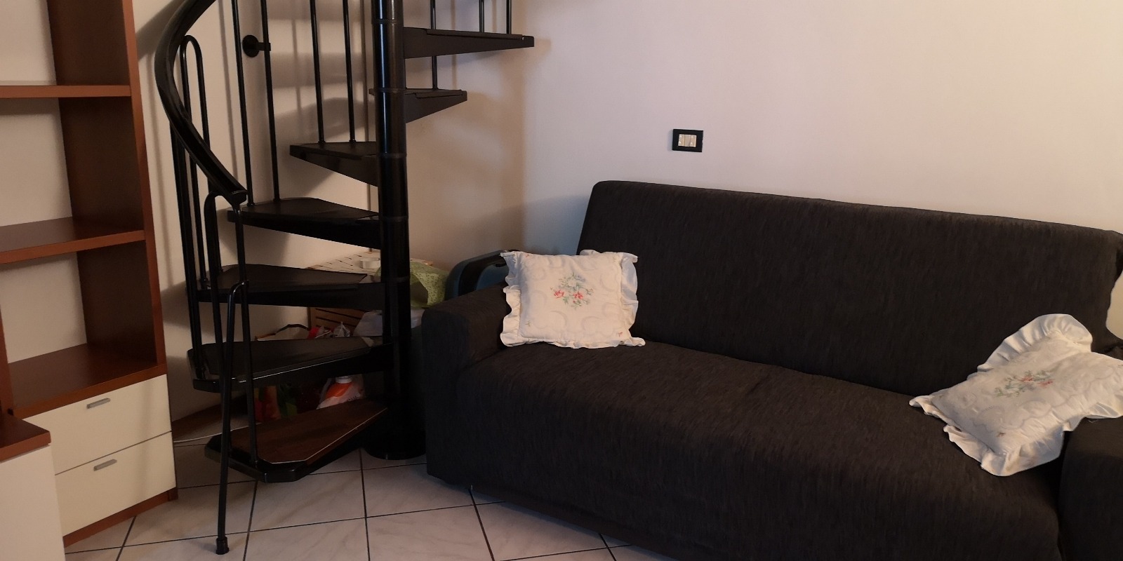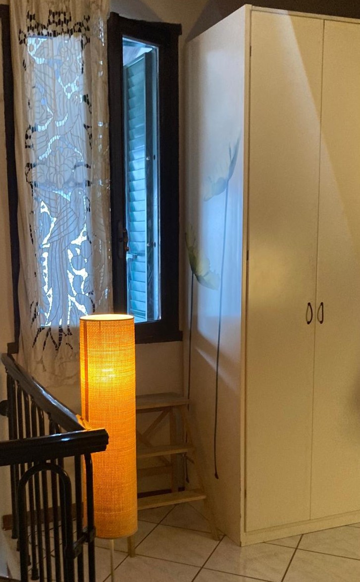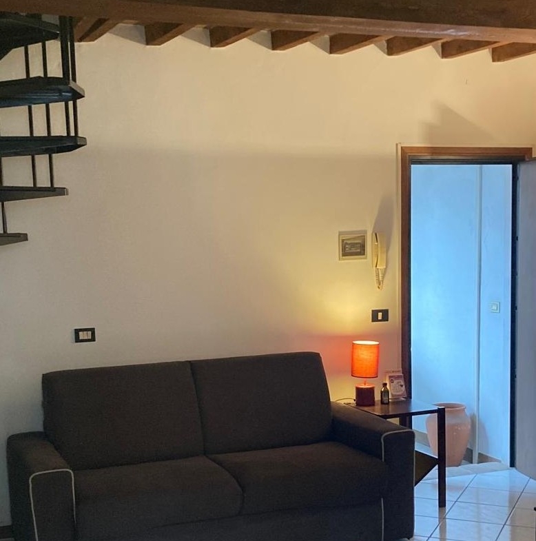 La scala a chiocciola porta alla mansarda con camera matrimoniale (letto alla francese, piazza e mezza)