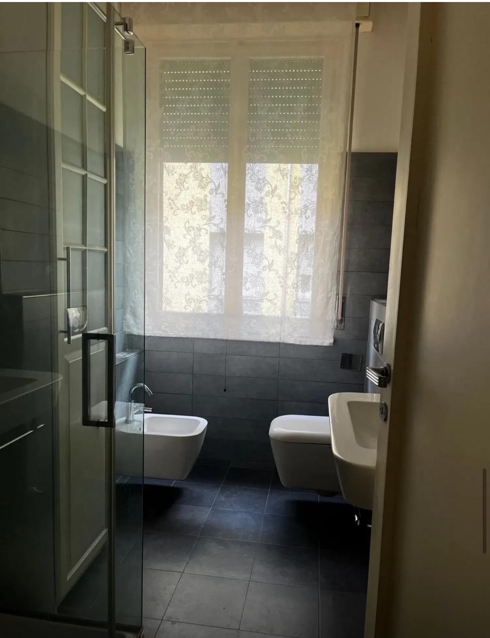Due bagni (uno cieco, con doccia e lavatrice; uno finestrato con doccia)