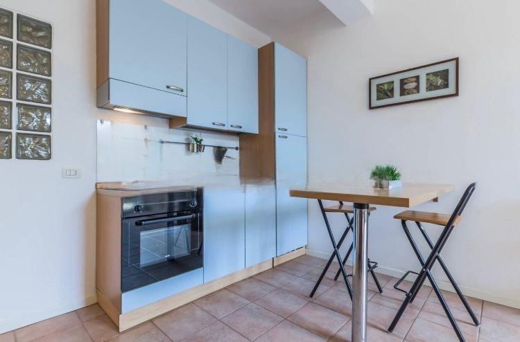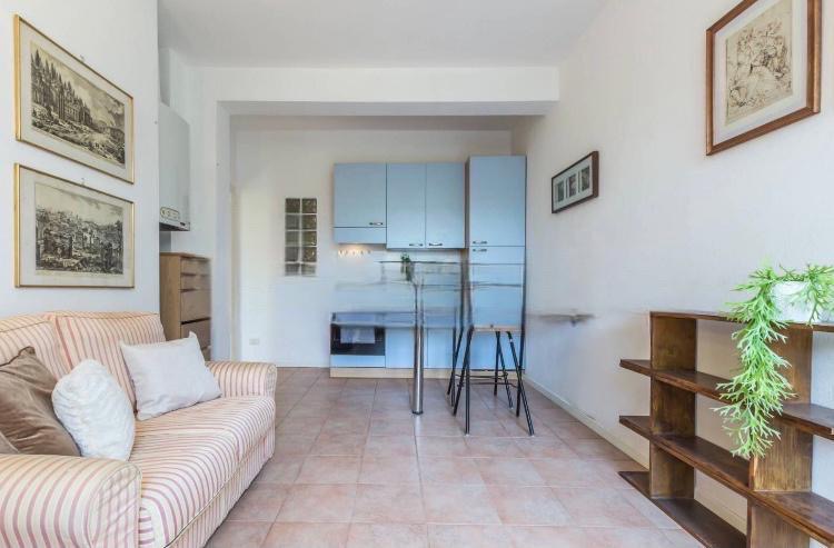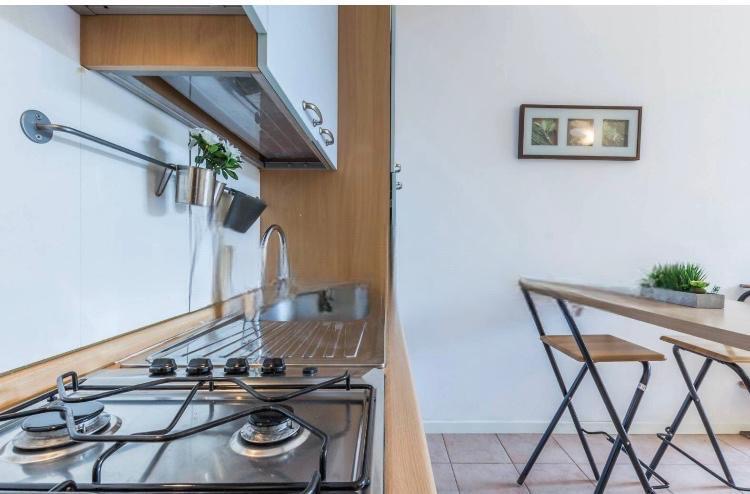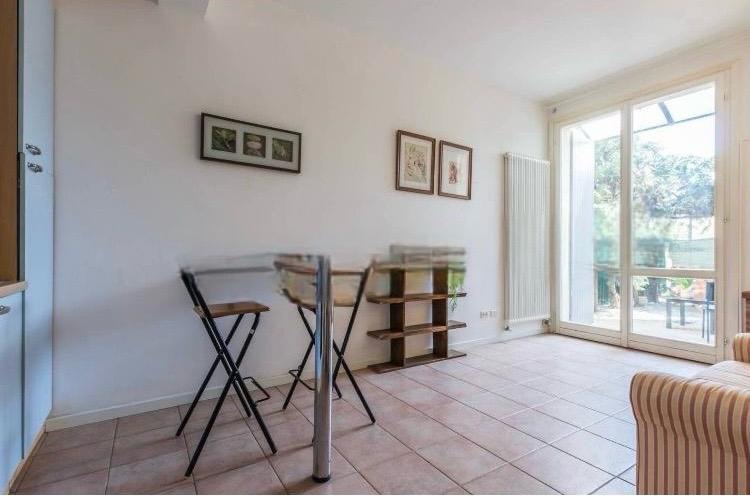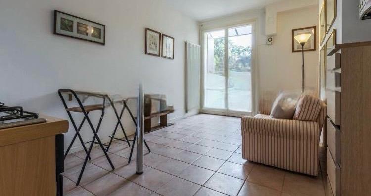 Soggiorno con angolo cottura e accesso Giardino