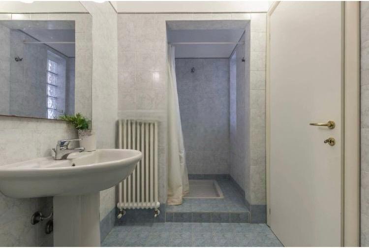 Bagno con doccia e lavatrice