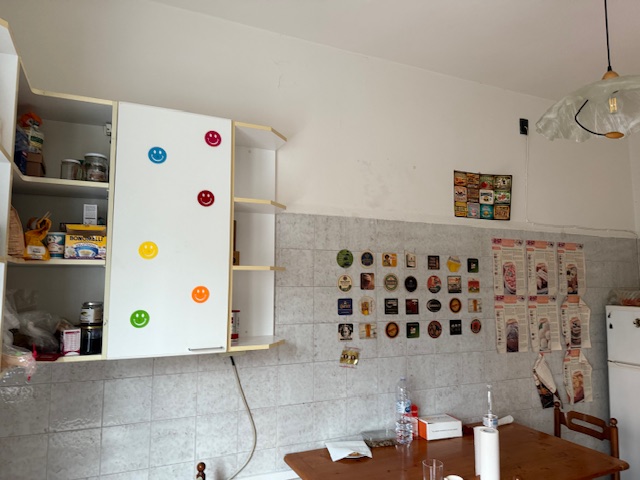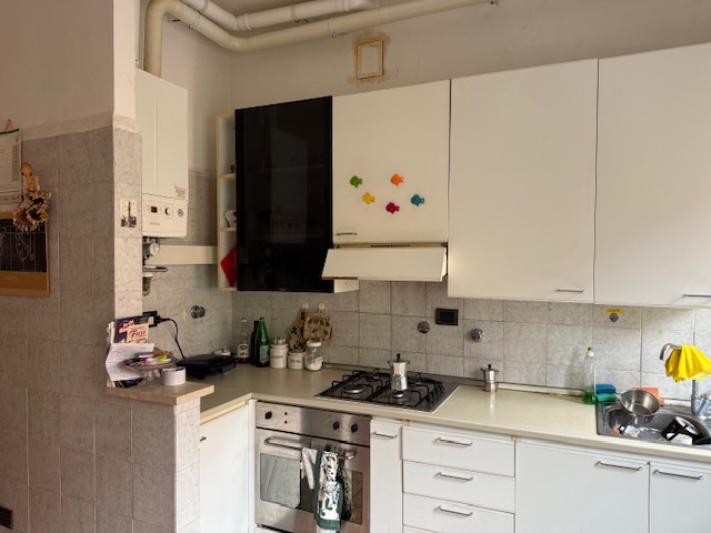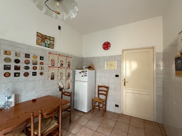 Ingresso, corridoio, servizio finestrato con vasca/doccia, lavatrice, ampia cucina abitabile attrezzata.